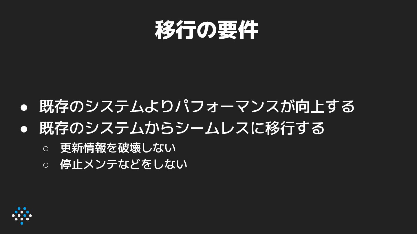 数百万ページのオーダー • 既存のシステムからシームレスに移行する ◦ 更新情報を破壊しない
