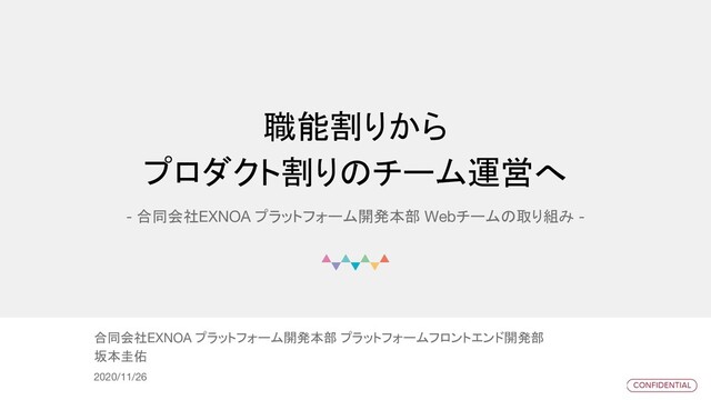 ドキュメント(Confluence)の整備 連絡手段(Slack)の整備 管理者向け サイト ユーザー向け サイト デザイン 領域 フロントエンド領 域 カテゴリ チャンネル 目的 Web web-all 全体に関する やりとり Web web-develop 開発に関する やりとり Web web-leader 各職能リーダーの 課題解決やりとり Web ・・・ ・・・ 案件 prj-案件名 「案件名」に関する やりとり 案件 ・・・ ・・・ プロダクトに紐づく情 報を探しやすい! 各職能で協力して情 報の重複を少しずつ 解消していこう 目的ごとにチャンネル が整理された チャンネルは基本的に オープン 案件のやりとりは 案件チャンネルで! ・ ・ ・ ・ ・ ・