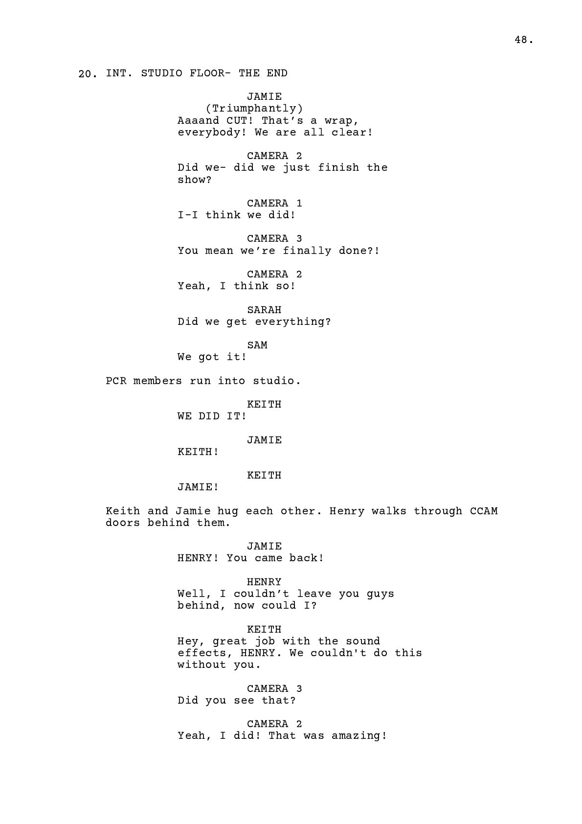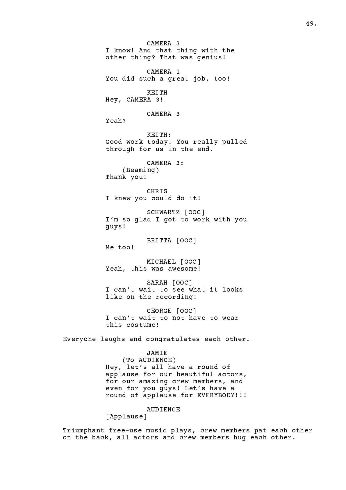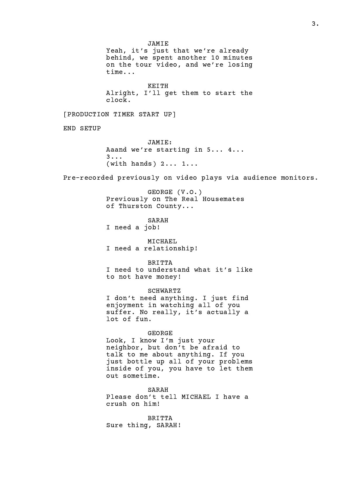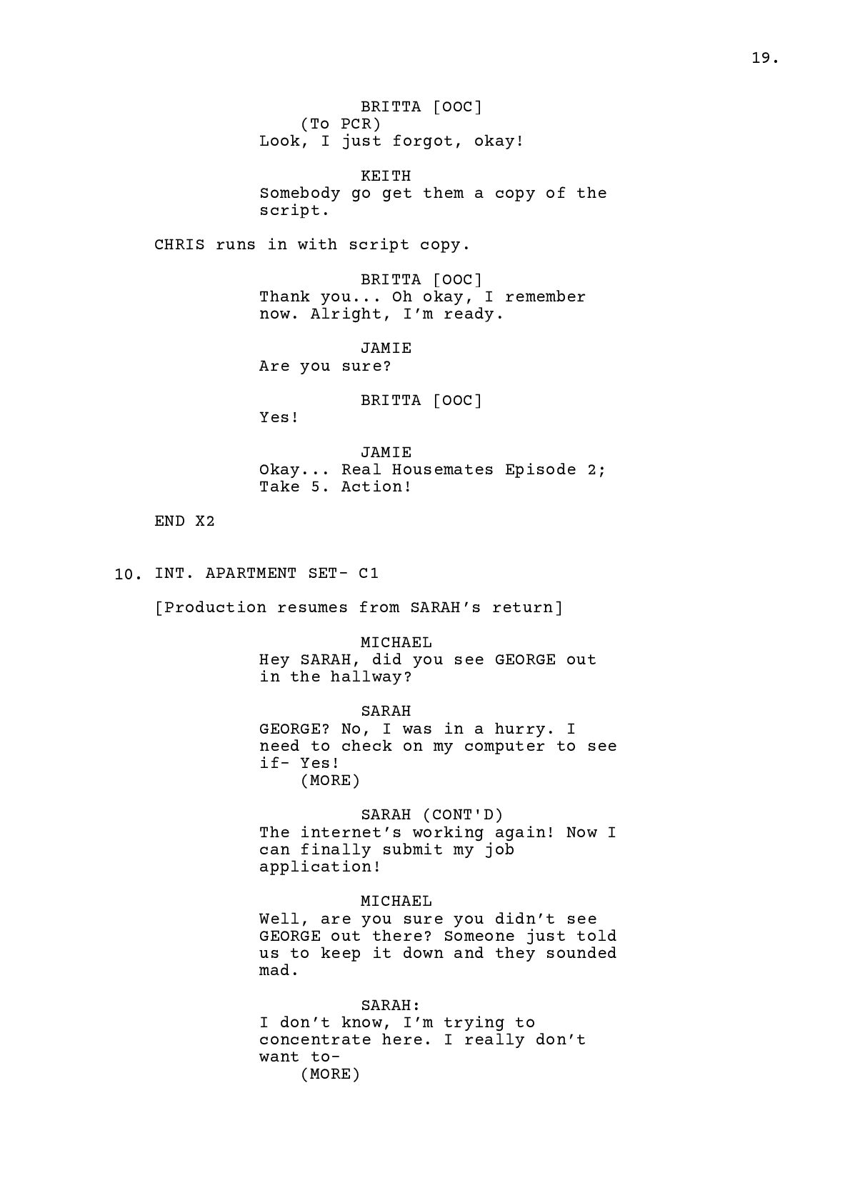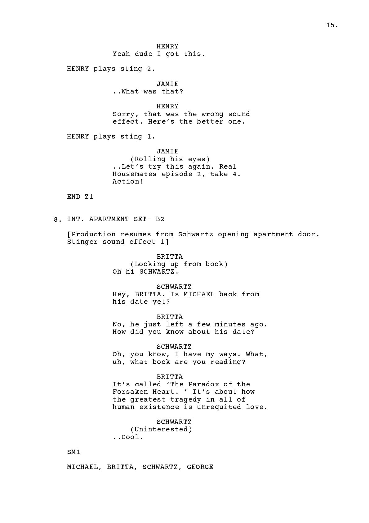 determined, headstrong, unwavering, courageous, and I kind of actually want to see her succeed in life. Watching Sarah put in so much effort into working towards her goals almost makes me want to do the same, and with enough time, I believe that Sarah Allen can accomplish anything that she sets her mind to." SCHWARTZ, did you write all of this by yourself?” SCHWARTZ Yeah, it’s... kind of embarrassing. SARAH No... no, it’s not. SCHWARTZ, I’m sorry I accused you of messing with the internet. SCHWARTZ Actually, I should be the one apologizing. If I didn’t always pull jokes on you guys all the time, you’d have no reason to suspect me. Michael, I did go a little too far by setting you up on a bad date, and I’m sorry for putting you through that. MICHAEL Thank you. ...You are probably right about me being too eager to be in a relationship. I’m sorry I got so mad at you earlier. SARAH BRITTA, I’m sorry I called you spoiled. BRITTA It’s okay, SARAH. I forgive you. MICHAEL Sarah, I’m sorry for yelling at you, too. SARAH Yeah, everything just got super out of hand today. SCHWARTZ You can say that again. BRITTA You know what we all need? SARAH 45.