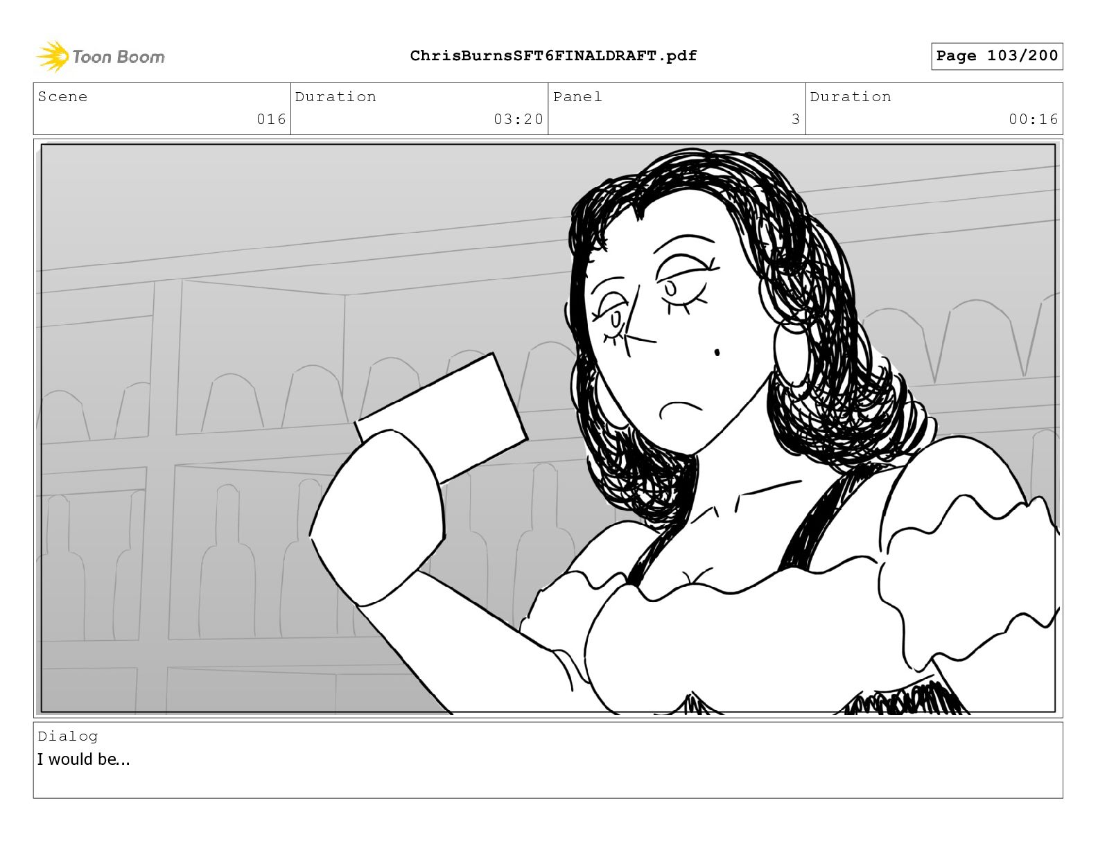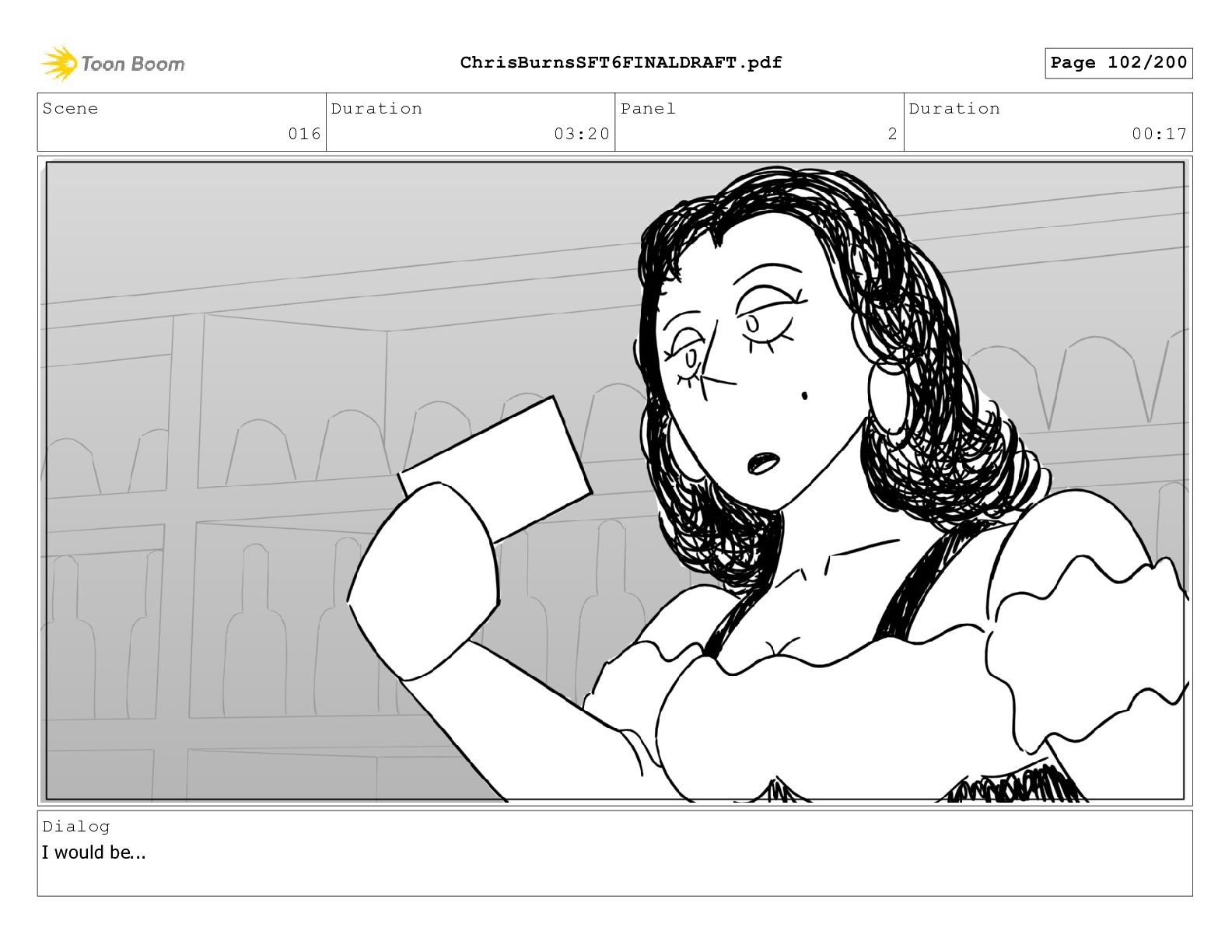 Scene 020 Duration 14:16 Panel 16 Duration 00:17 Dialog I