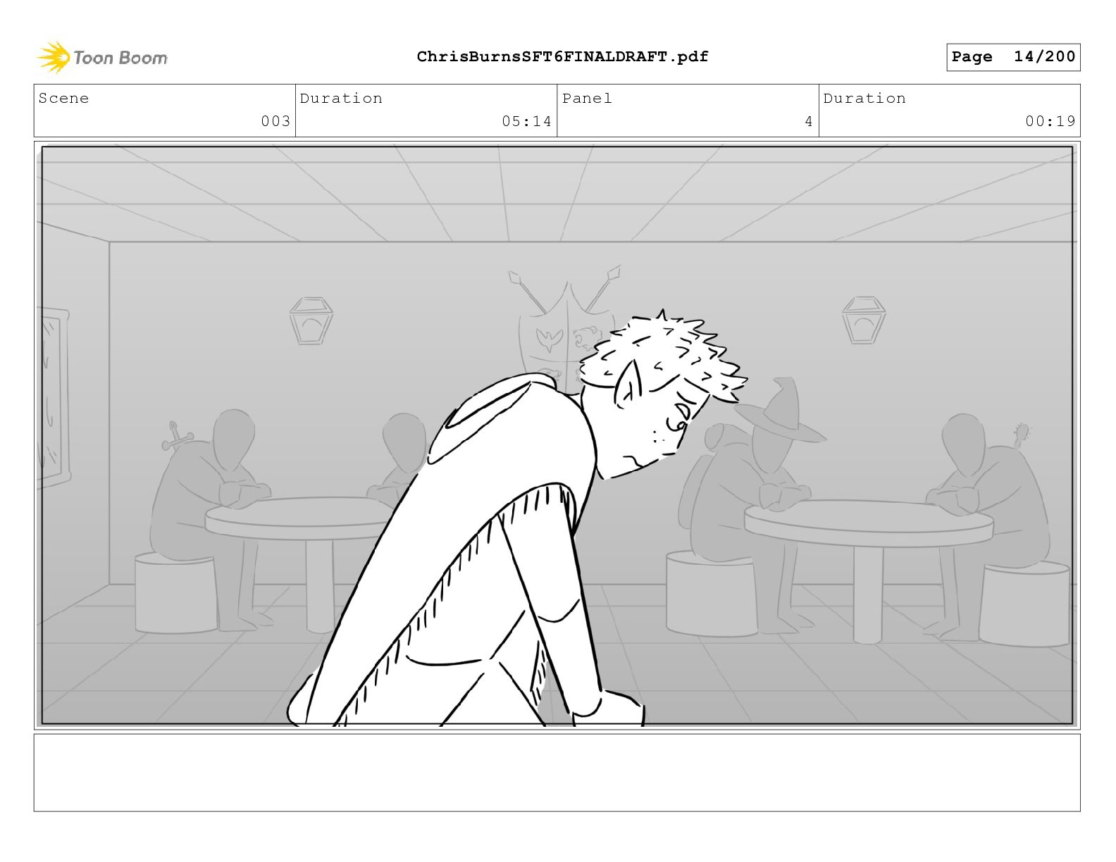 Scene 020 Duration 14:16 Panel 3 Duration 00:14 Action Notes