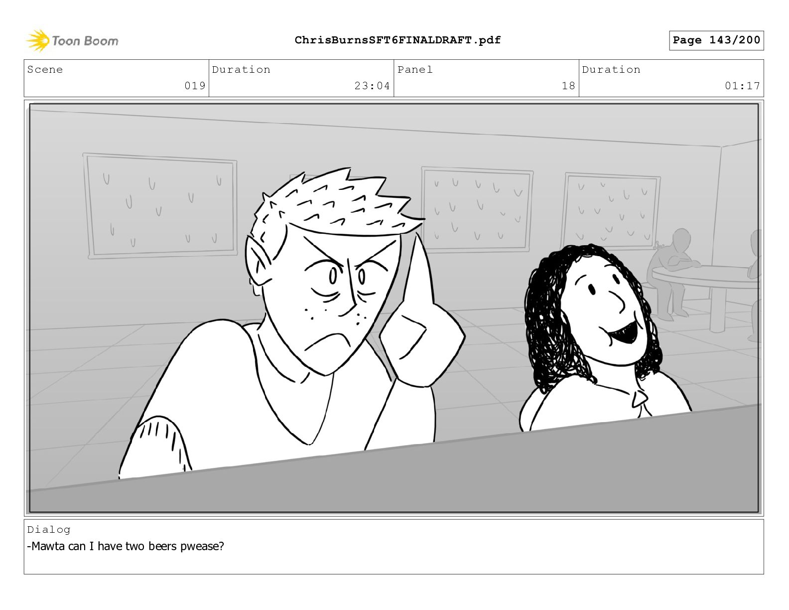 Scene 020 Duration 14:16 Panel 17 Duration 01:04 Dialog I