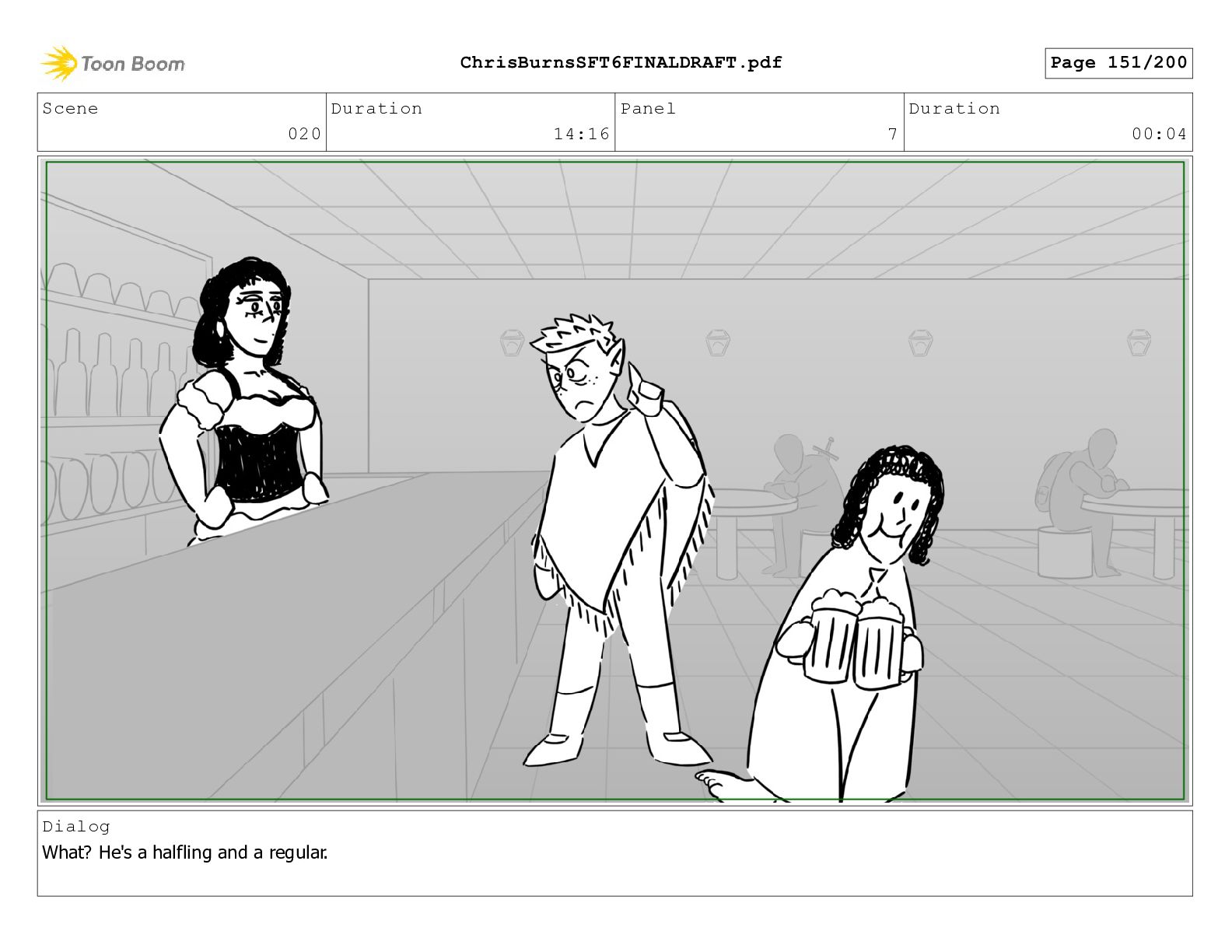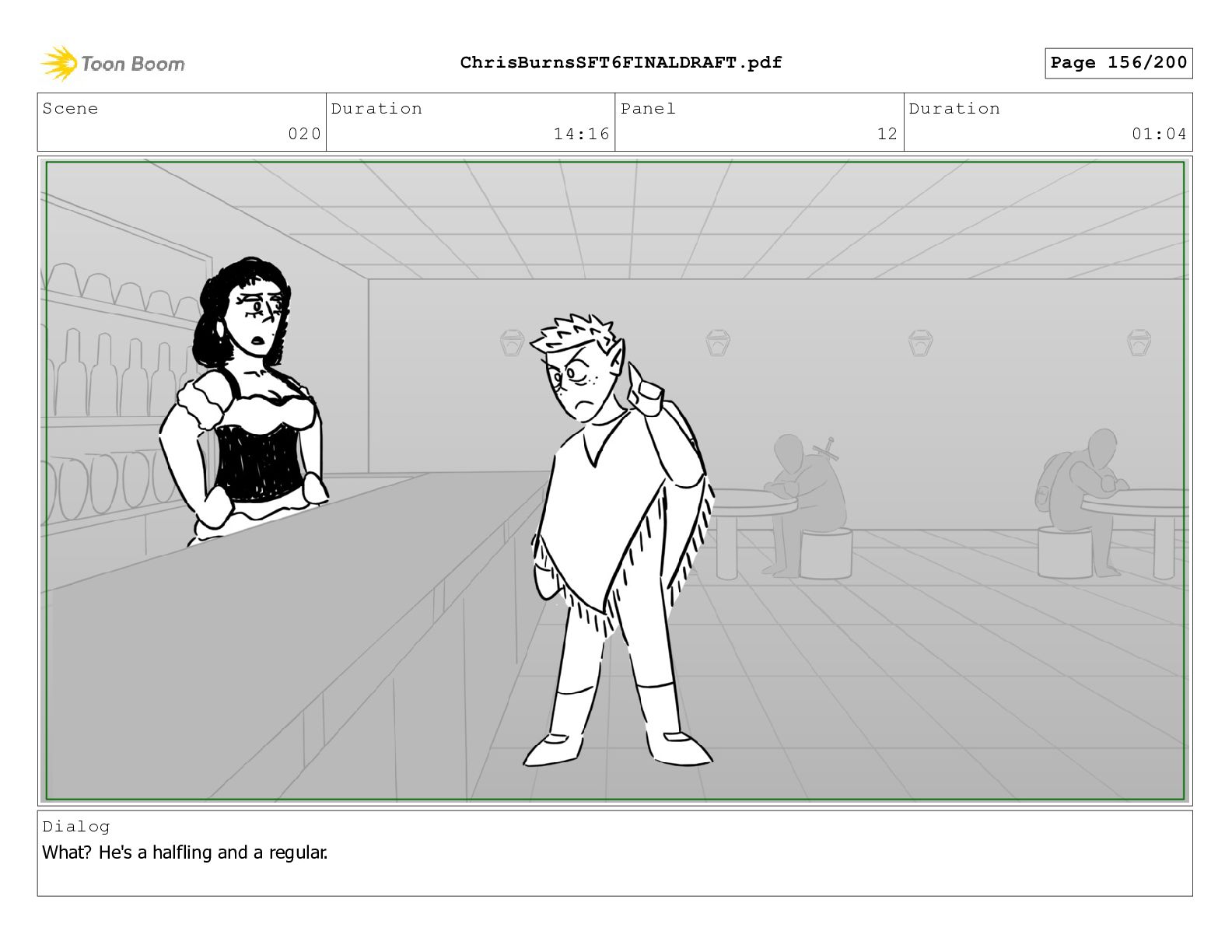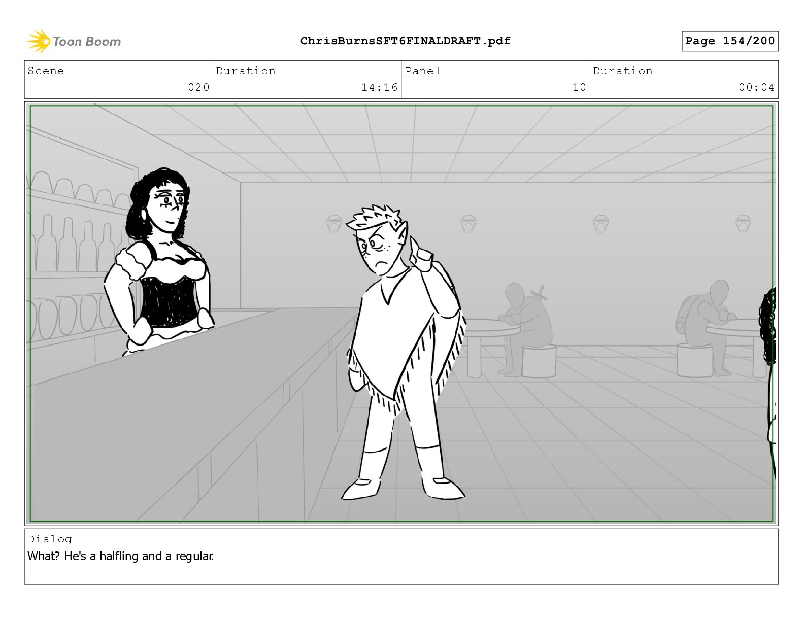 Scene 020 Duration 14:16 Panel 7 Duration 00:04 Dialog What?