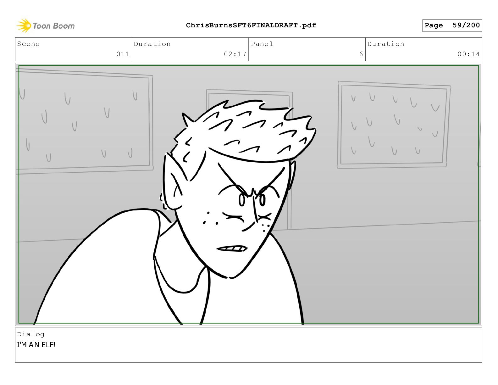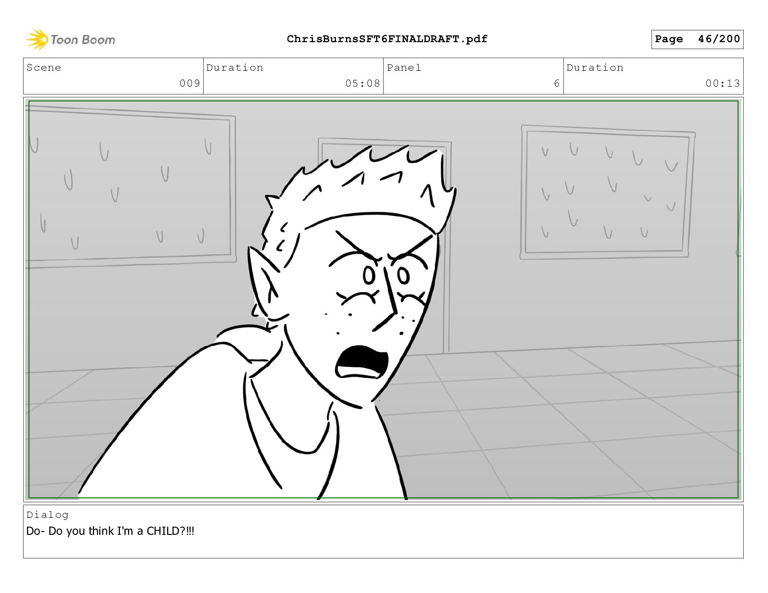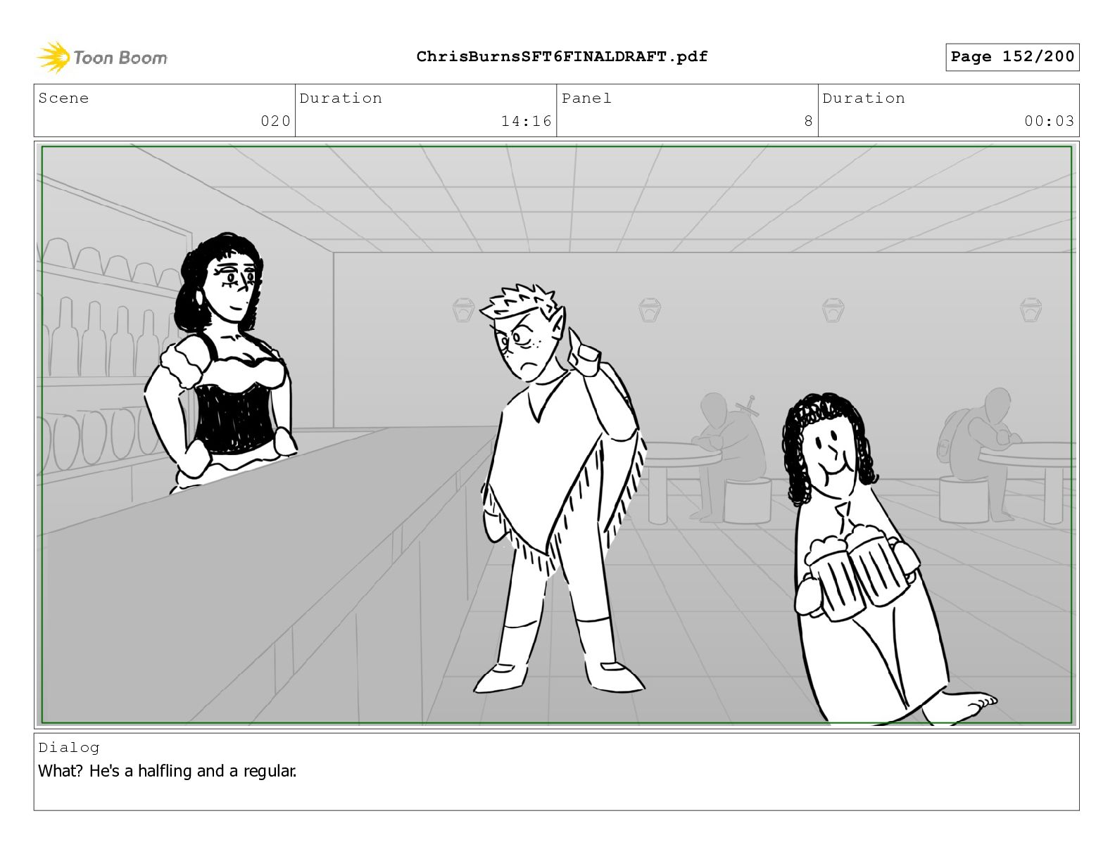 Scene 020 Duration 14:16 Panel 6 Duration 00:03 Dialog What?