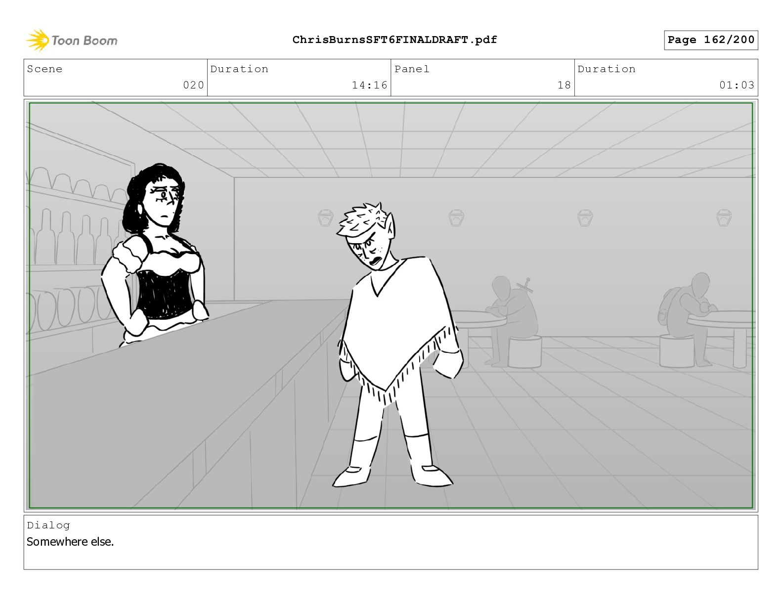 Scene 020 Duration 14:16 Panel 18 Duration 01:03 Dialog Somewhere