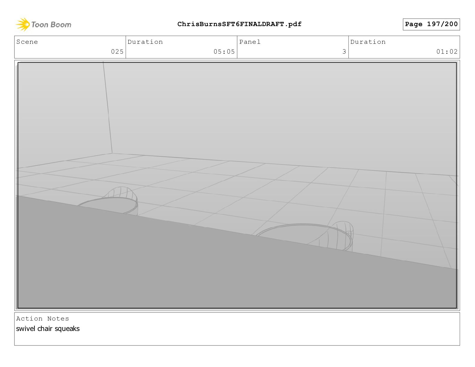 Scene 025 Duration 05:05 Panel 4 Duration 01:02 Action Notes