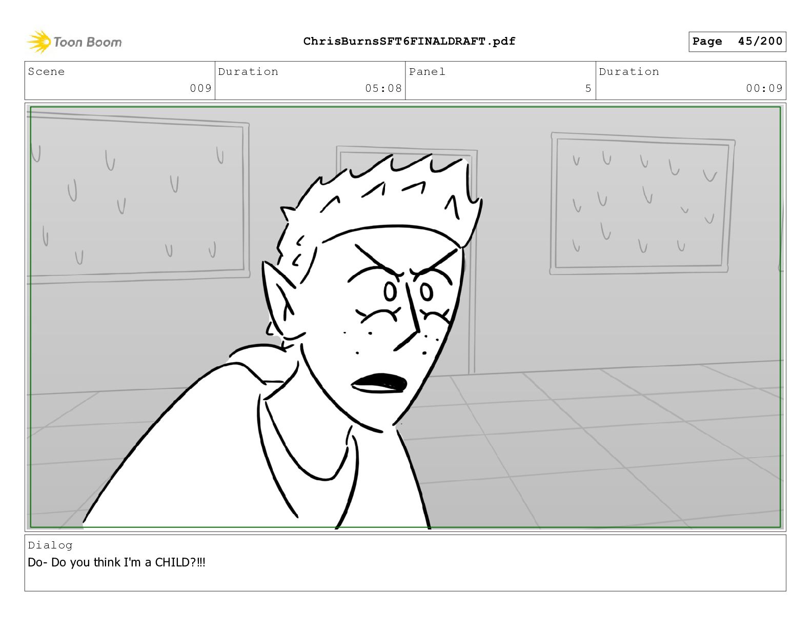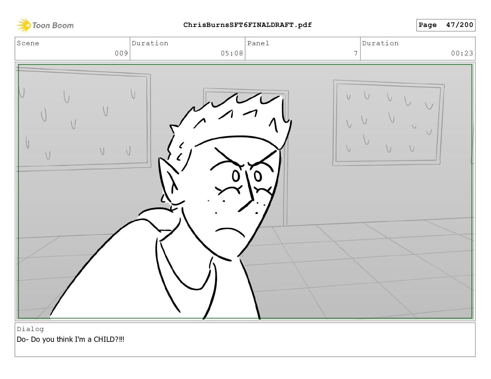 Scene 020 Duration 14:16 Panel 9 Duration 00:03 Dialog What?
