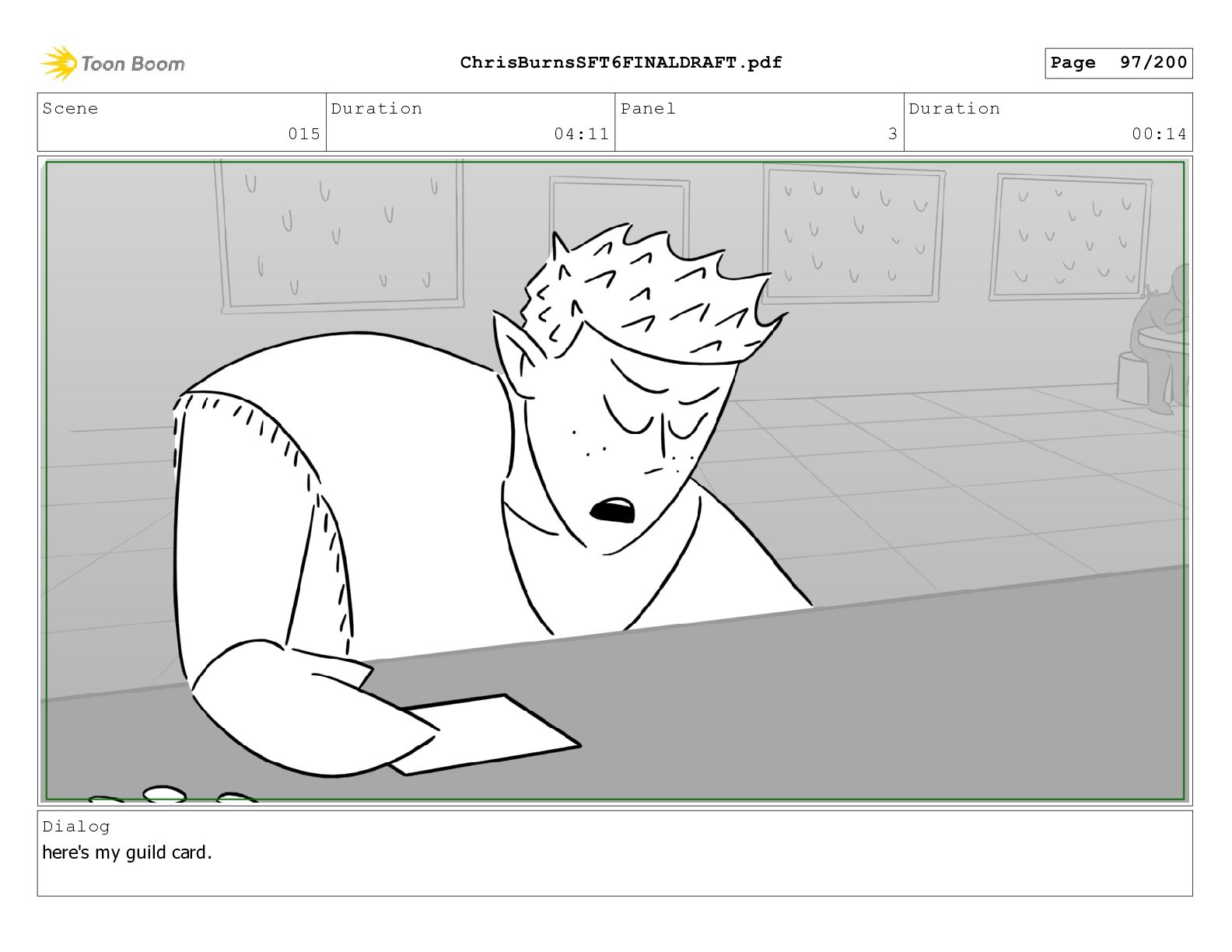 Scene 020 Duration 14:16 Panel 19 Duration 02:00 Dialog Somewhere