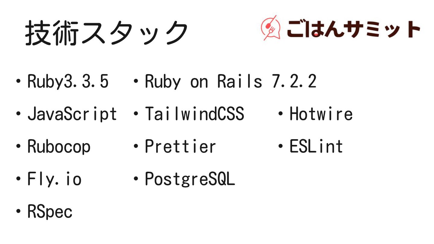 ・Fly.io ・PostgreSQL ・RSpec 技術スタック