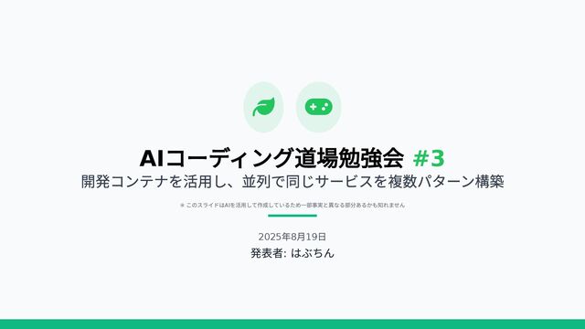 AI コーディング道場勉強会 #3 開発コンテナを活用し、並列で同じサービスを複数パターン構築 ※ このスライドは AI を活用して作成しているため一部事実と異なる部分あるかも知れません