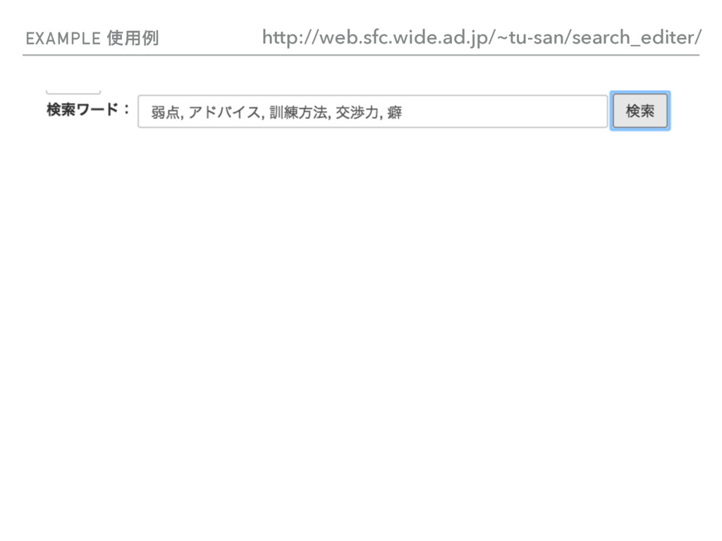 EXAMPLE ༻ྫ http://web.sfc.wide.ad.jp/~tu-san/search_editer/