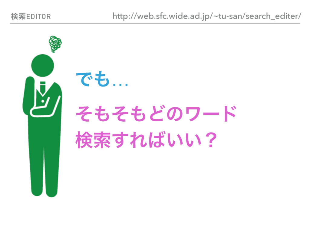 ݕࡧEDITOR Ͱ… ͦͦͲͷϫʔυ ݕࡧ͢Ε͍͍ʁ http://web.sfc.wide.ad.jp/~tu-san/search_editer/