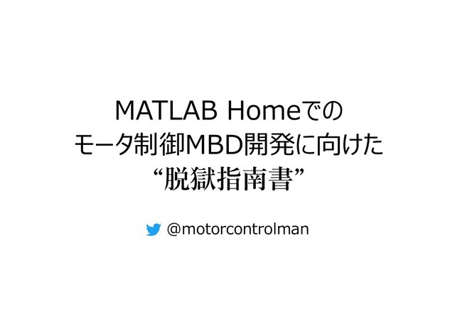 MATLAB Homeでの モータ制御MBD開発に向けた “脱獄指南書” @motorcontrolman