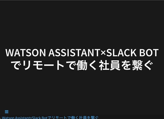WATSON ASSISTANT×SLACK BOT WATSON ASSISTANT×SLACK BOT でリモートで働く社員を繋ぐ でリモートで働く社員を繋ぐ