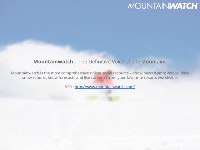 Mountainwatch is the most comprehensive online snow resource – snow news & videos, daily snow reports, snow forecasts and live cameras from your favourite resorts worldwide.