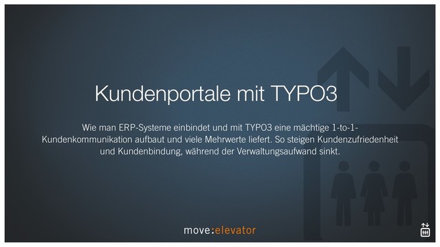 Kunden über persönliche Interviews 2. Zielgruppen- und Business-Analyse beispielsweise über co-kreative Workshops (Stakeholder Problem Map, Business Model Canvas, User Stories, KANO-Modell) 3. TYPO3 Core-Extension felogin 4. Ggf. etablierte TYPO3-Extension powermail & powermail_cond für mehrstufige Formulare (gern auch öffentlich für „Neukunden“, Bewerber usw.) 5. Ggf. aktuelle, geschützte Informationen über TYPO3 Core-Extension tx_news 6. Anbindung Ihres CRM-/ERP-System über individuelle Extension Wie können / sollten Sie morgen beginnen?
