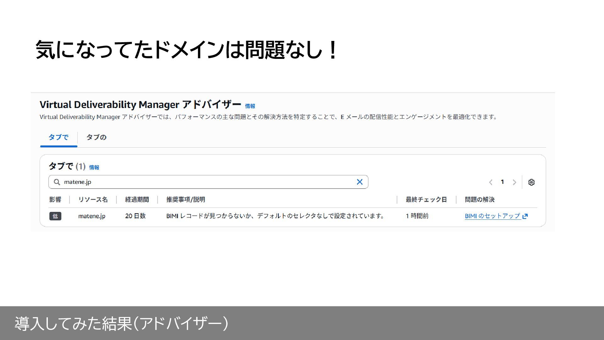 SES Virtual Deliverability Manager (VDM)のアドバイザー機能で、将来もしかするとメール送信が止まってたかもしれない事故を防げた話。