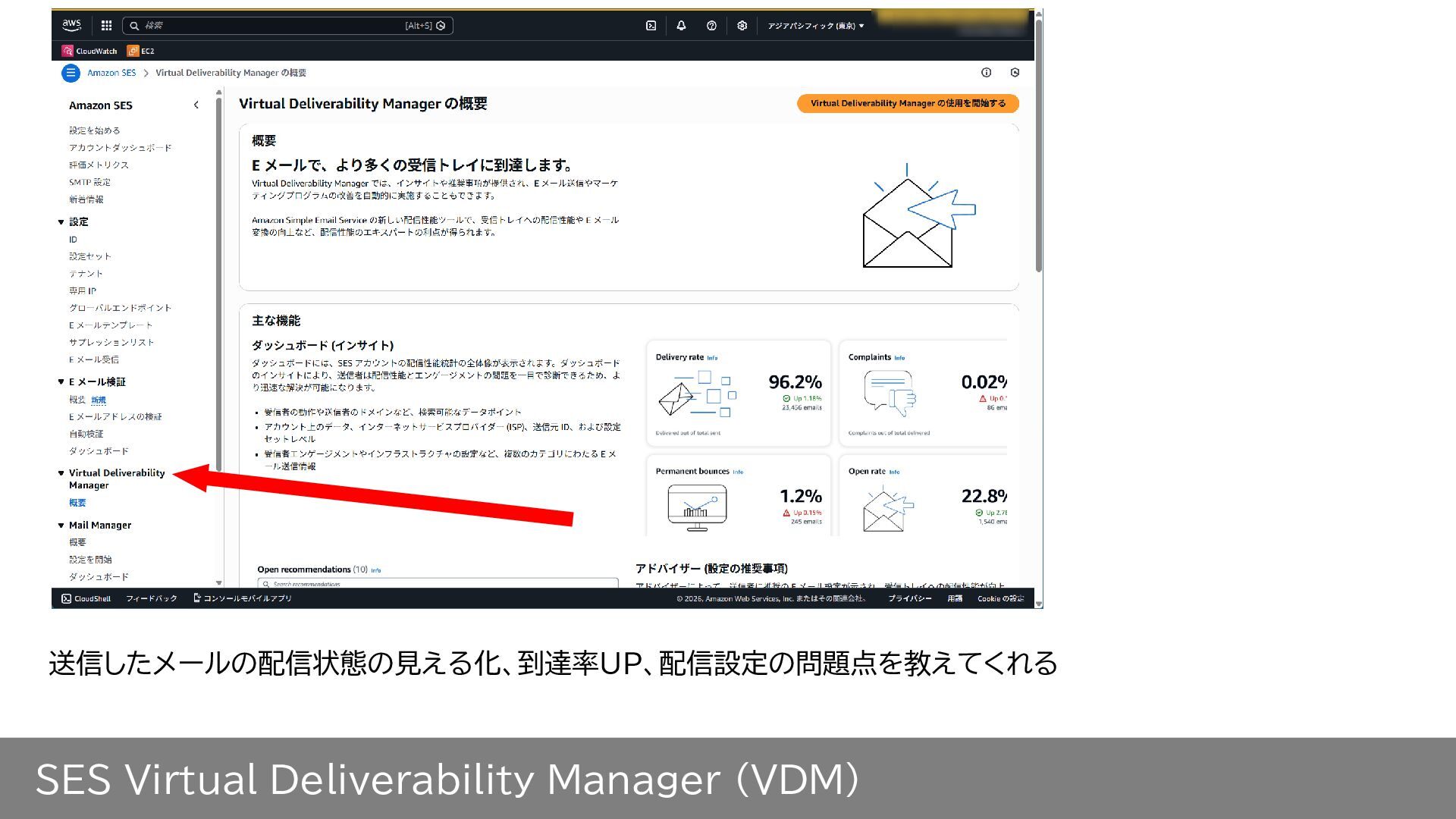 SES Virtual Deliverability Manager (VDM) あ あ 送信したメールの配信状態の見える化、到達率UP、配信設定の問題点を教えてくれる
