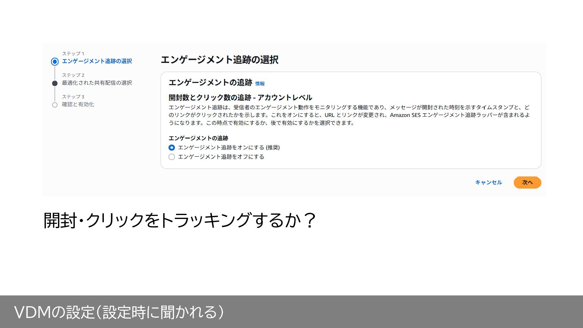 VDMの設定(設定時に聞かれる) あ 開封・クリックをトラッキングするか?