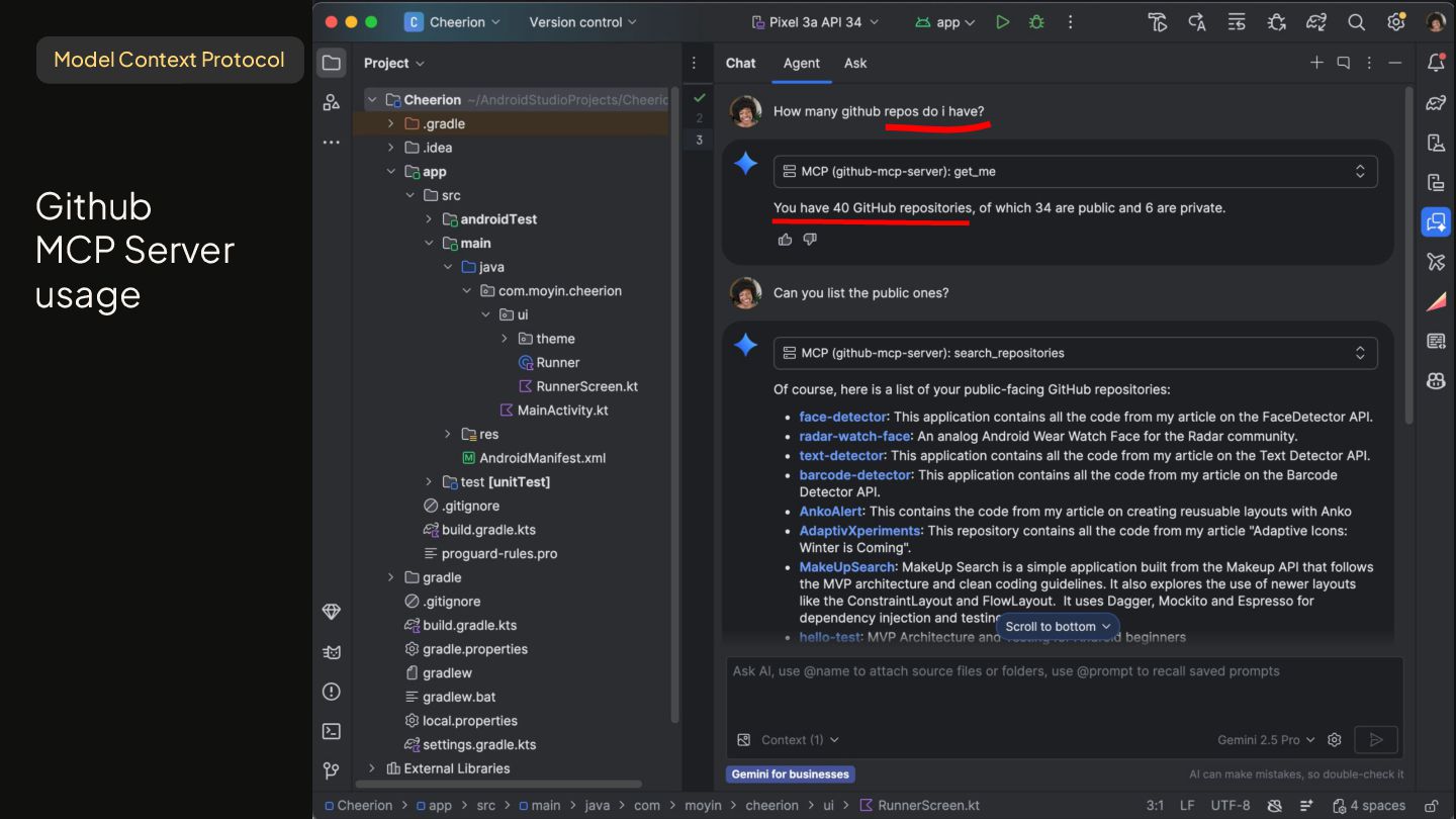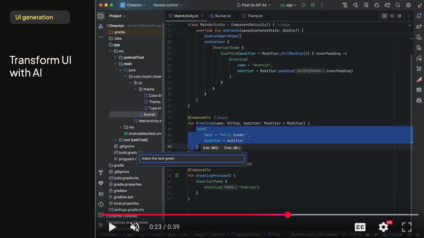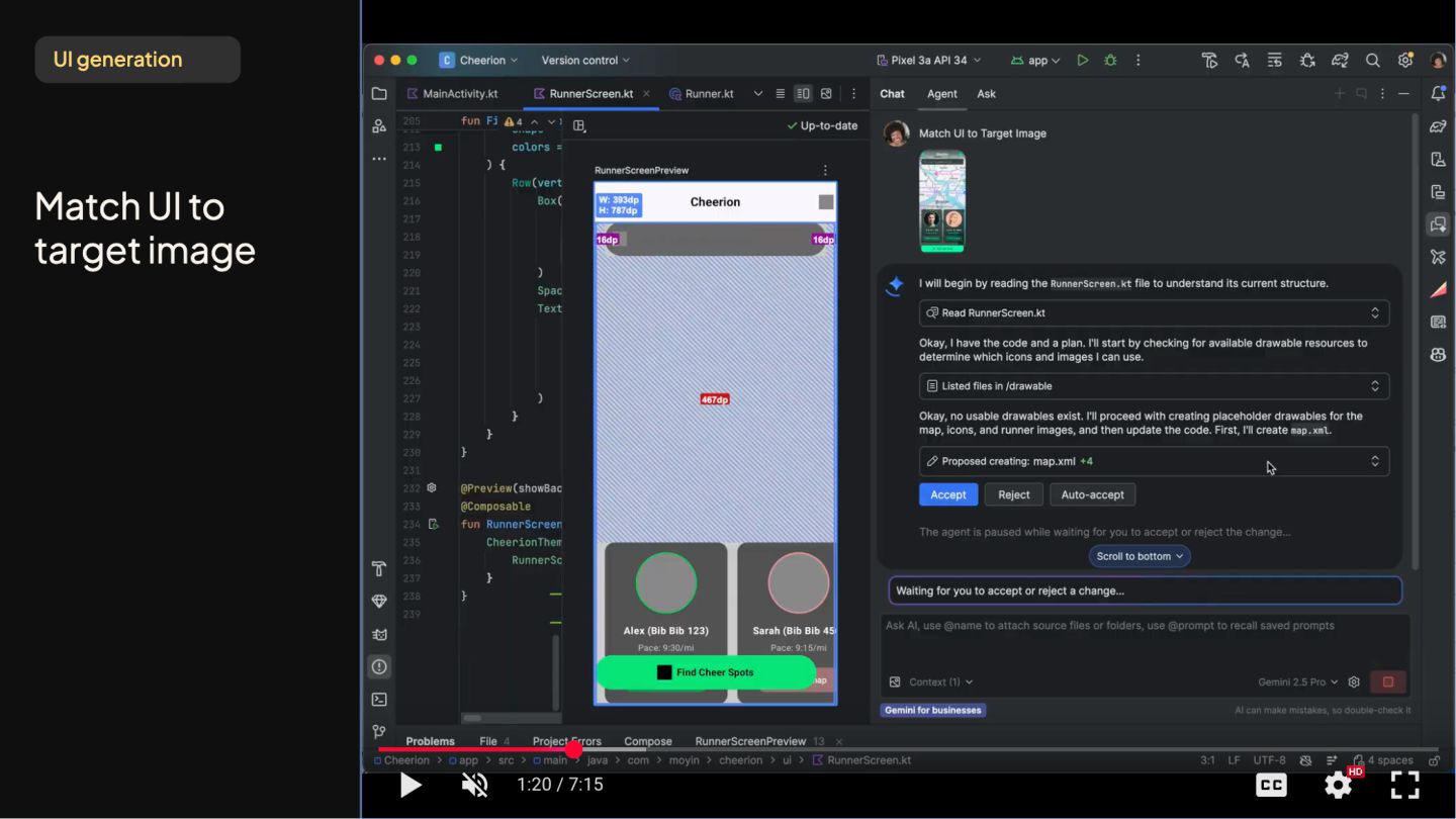 In this talk, I explored the latest features of AI in Android Studio to see how it can simplify everyday tasks. I showcased how it handles complex, multistep workflows like refactoring large codebases, generating and running tests, updating dependencies, and fixing stubborn build errors.
