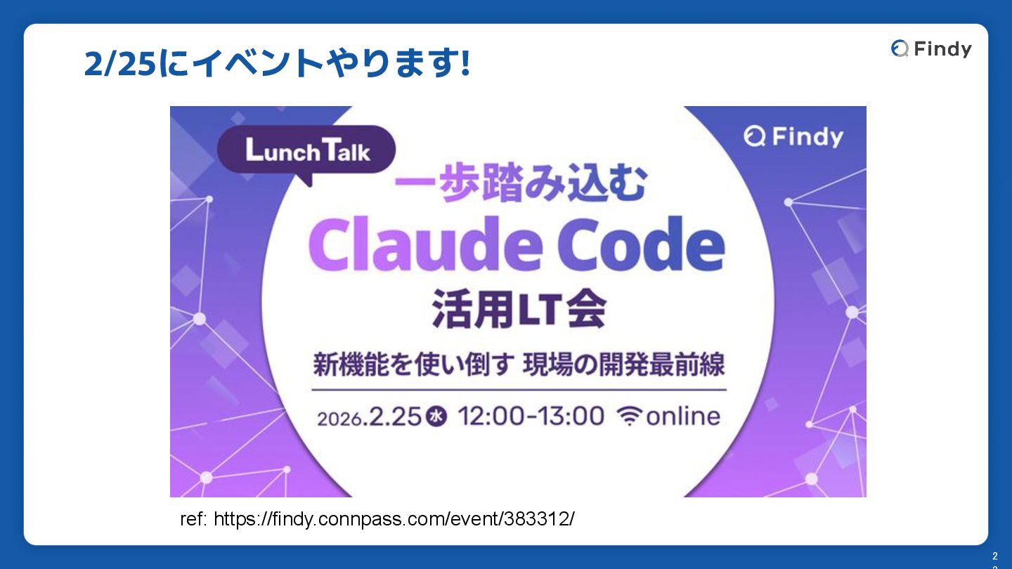 2 2/25にイベントやります! ref: https://findy.connpass.com/event/383312/