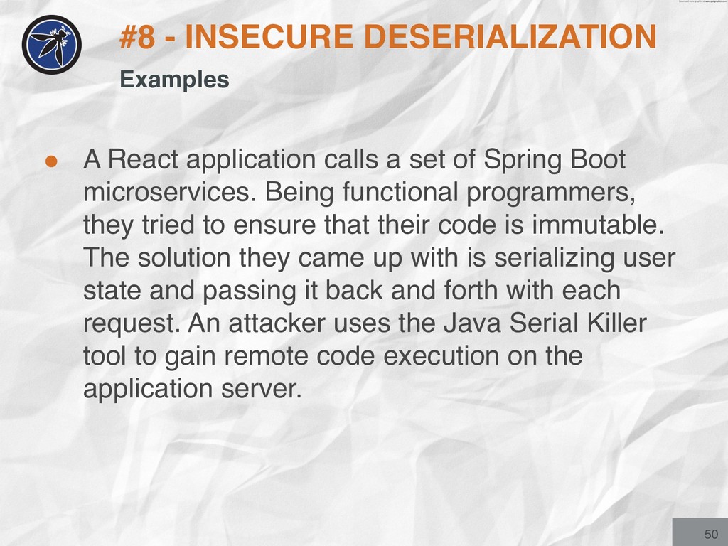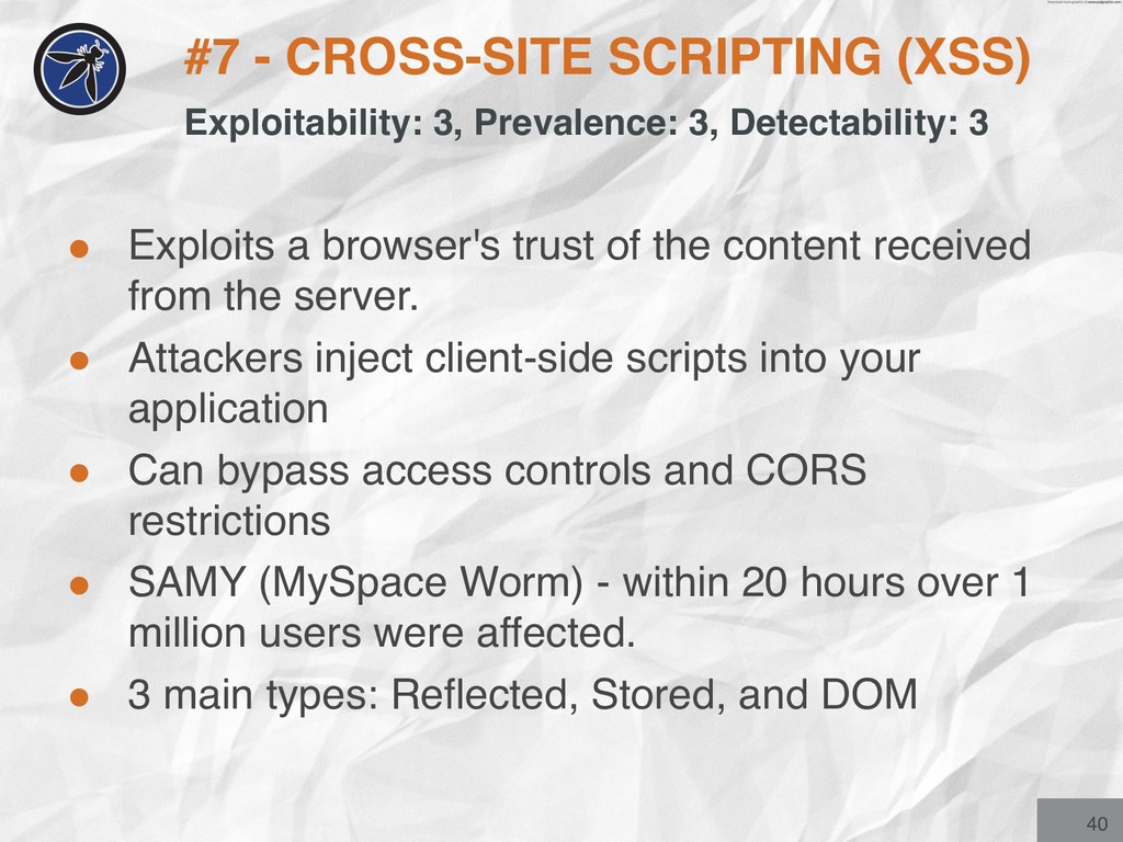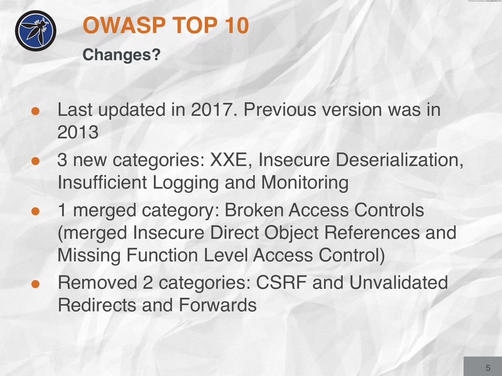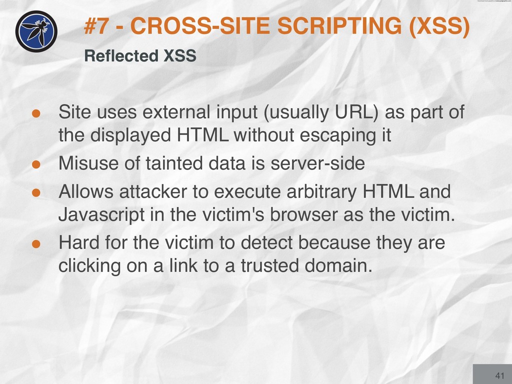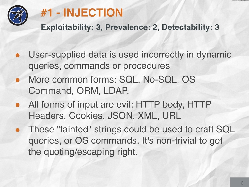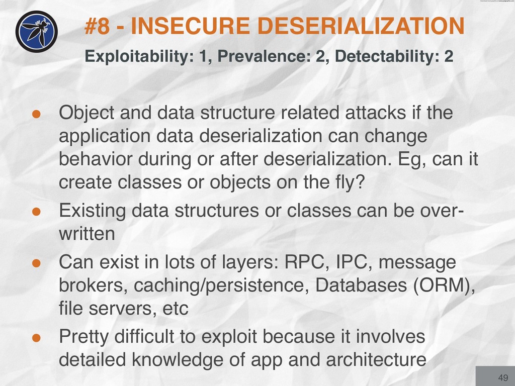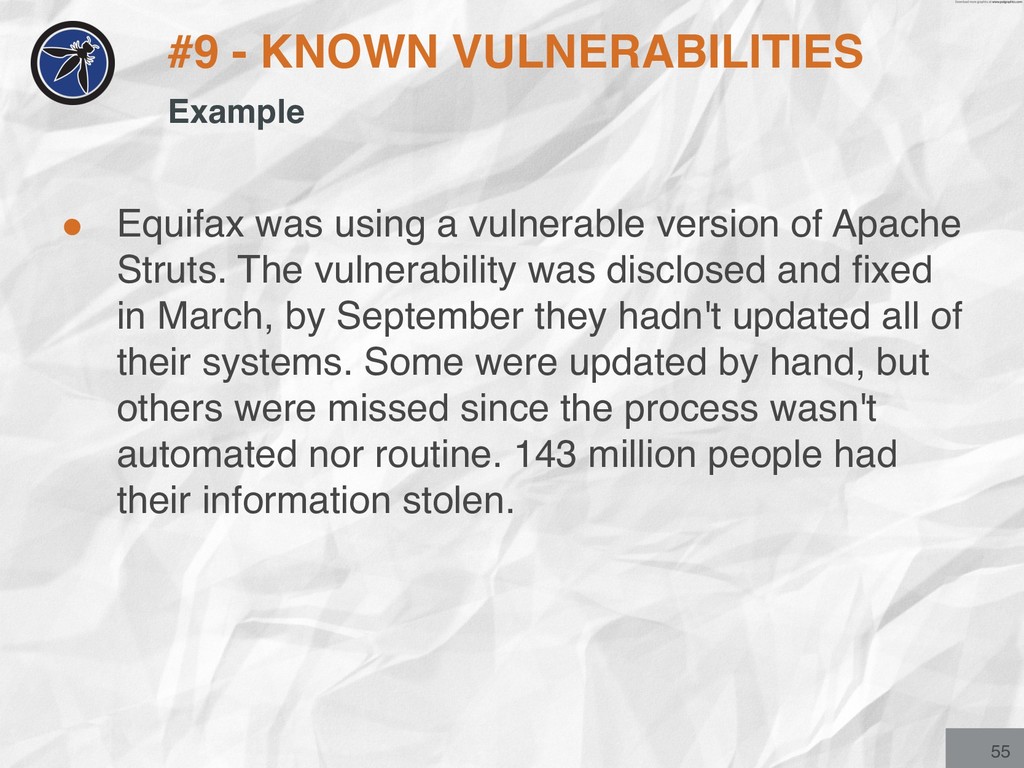 OWASP recently updated their Top 10 list of Web Application Vulnerabilities. In this talk we’ll break down each vulnerability category, giving an overview, examples of the vulnerability in action, and how you can protect your application from exploitation. All examples will be language and framework agnostic so you can apply it to a wide range of projects. We’ll talk about what has changed on the list since last time it was updated and what new threats are surfacing. We’ll also spend some time talking about various processes and tools you can use to make sure your next project doesn’t end up as a morality tale for other technologists. Whether you’re an application developer, or looking to add security automation to your DevOps pipeline, this talk will help fill in the gaps.