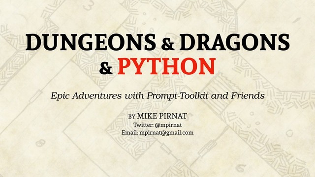 Embark on an epic adventure through the twisty passageways of a Python application developed to help Dungeon Masters run Dungeons & Dragons sessions. You’ll be joined in your quest by mighty allies such as Prompt-Toolkit, Attrs, Click, and TOML as you brave the perils of application structure, command completion, dynamic plugin discovery, data modeling, turn tracking, and maybe even some good old-fashioned dice rolling. Treasure and glory await!