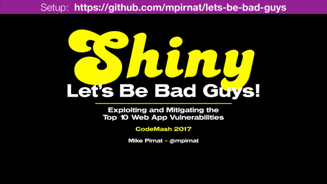 Shiny, Let's Be Bad Guys: Exploiting and Mitigating the Top 10 Web App Vulnerabilities -- CodeMash 2017 edition