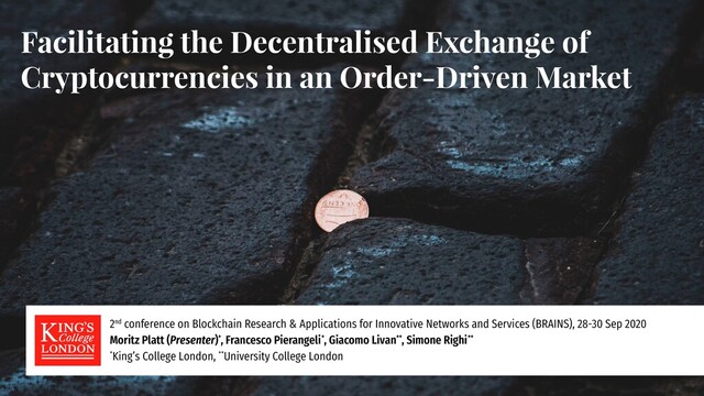 This presentation discusses a protocol to facilitate decentralised exchanges on an order-driven market through a consortium of market services operators. We discuss whether this hybrid protocol combining a centralised initiation phase with a decentralised execution phase outperforms fully centralised exchanges with regards to efficiency and security. Here, a fully efficient and fully secure protocol is defined as one where traders incur no trading costs or opportunity costs and counterparty risk is absent. We devise a protocol addressing the main downsides in the decentralised exchange process that uses a facilitating distributed ledger, maintains an order book and monitors the order status in real-time to provide accurate exchange rate information and performance scoring of participants. We show how performance ratings can lower opportunity costs and how a rolling benchmark rate of verifiable trades can be used to establish a trustworthy exchange rate between cryptocurrencies. The formal validation of the proposed technical mechanisms is the subject of future work.