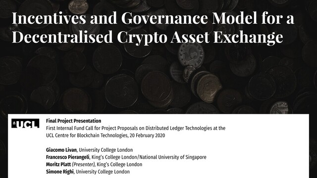 In this presentation we discuss a protocol to facilitate decentralised exchanges on an order-driven market through a supporting distributed ledger system.