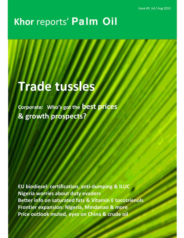 l , J u l / A u g 2 0 1 3 Khor Reports At a time when the palm oil price outlook is lacklustre, output growth and average selling price (ASP) achieved are keenly eyed. We take a look at the price outcomes in FY2012, the growth outlook and capital expenditure (capex) plans for selected SE Asia public‐listed plantations for FY2012‐2015. First, ASP versus the popularly traded and referenced futures price (Bursa Malaysia Derivatives Futures of CPO or FCPO) shows few matching the 12‐month average FCPO price (refer to grey bars near 100%); these include Golden Agri, IOI and Jaya Tiasa. In general, Indonesian plantations are CPO price disadvantaged because of the country’s duty structure. Thus, the relatively higher ASPs for Golden Agri, Indofood Agri and First Resources are notable. Is more active price management practised by these higher achievers and what are their price risk management policies? Second, plantation mature area (green line in the chart below) is an important indicator. In the high range of 90‐85% mature area are Sime Darby, Golden Agri, IOI, London Sumatra and Wilmar. The younger plantations with under 70% mature: Indofood to BW Plantations. Those with the lower mature areas (tree over 3‐4 years old) have stronger output growth as their trees mature and then enter the higher yielding phase. There is also less need for replanting. Earnings per share (EPS) growth forecast for FY2012‐2015 corresponds with this broad indicator (9 June 2013, CIMB; refer to red line in graphic below). There is an inverse relationship between the percentage of mature tree area and 3‐year EPS CAGR forecasts. A detailed study of growth should look at the average age of oil palm trees, plantable land bank and the annual pace of planting and replanting. Recent capex plans include: Sime Darby: RM 5 (USD 1.6) billion for FY2013; in line with its goal to reach 1 million hectares within five years. Genting Plantations: capex budget of RM 500 (USD 160) million in 2013. Planting target is 15,000‐20,000 hectares. Golden Agri plans to spend USD 550 million in FY2013 as it plans to acquire more concession areas (35,000 to 40,000 hectares) and increase the capacity of its refineries. About USD 200 million will for the upstream business, and the rest will be for the downstream. First Resources allocates USD 200 million for 2013 (perhaps funded in part by its recent sukuk). It aims to plant another 15,000 ‐ 20,000 hectares of oil palm and 4,000 hectares of rubber. Two new palm oil mills will be built this year, in addition to refinery expansion. Nigeria’s new investors “Nigeria was before 1965 the world’s largest producer of palm produce but has ceased to contribute to the world’s export of the commodity since 1974 except palm kernel…” (7 June 2013, nigerianpilot.com). The supply deficit situation in Nigeria has attracted major international investors. Notable among these are PZ Wilmar’s 1,000 MT per day refinery in Ikorodu or Lagos State, which will start operations soon. This is a joint venture between PZ Cussons, a West Africa origin global manufacturer and Wilmar International, the world’s largest palm oil trader. In Cross Rivers State, PZ Wilmar will develop 50,000 hectares of plantation and another 20,000 hectares, including out‐growers. It starts with a 32,000 hectare plantation. For this, 600,000 high yield palm plants have been transplanted to replace low yield trees, and 2.1 million seedlings are being raised in four nurseries (9 June 2013, ngrguardiannews.com). Earlier, other African agribusinesses have been acquiring estates in Nigeria. The development of brown field estates and other sites with new processing facilities augurs well for higher production in the home of palm oil. New hopes – frontier development plans Felda Global would like “to help implement and replicate the successful Felda scheme model in Myanmar, Cambodia and Africa… to share Felda's experience in creating land for the landless and eradicate poverty” (30 April 2013, thestar.com.my). This is an interesting social enterprise aspiration for a public‐listed company. Felda Global is sitting on a big cash pile after its IPO last year. Its name has been bandied about in several other geographies, including PNG, Mindanao, Liberia, Nigeria, Ghana, Congo, Ivory Coast, Cameroon and Gabon. “Wah Seong Berhad, a Malaysian conglomerate, will invest USD744 million over the next decade to a establish oil palm plantation in the Republic of Congo,” (31 May 2013, reuters.com). “Herakles, a company owned by New York venture capital firm Herakles Capital, has suspended work on its giant 60,000‐hectare palm oil plantation in Cameroon after protests by environmental groups and villagers,” (31 May 2013, reuters.com). In an on‐off saga, the latest news is that this project is back on, but to be down‐sized to 20,000 hectares from 73,000 hectares. In Mindanao, Philippines, “almost 900,000 hectares of land identified to be suitable for oil palm plantation on the island, 177,000 hectares of these already under negotiation for oil palm development. Majority of these areas are in the Autonomous Region in Muslim Mindanao (ARMM) and Caraga…. Univanich Carmen Palm Oil Corp. (recently announced), a ₱600 (USD 14) million palm oil crushing mill in Carmen, North Cotabato.” (22 May 2013, bworldonline.com). Big names recently mentioned include San Miguel Corp (allied with Kuok Group / Wilmar International), Hong Kong‐based First Pacific Co. Ltd. (PT Indofood associate), and the Indonesia government (offered 12,000 hectares). Frontiers Corporate: prices, growth prospects & capex plans