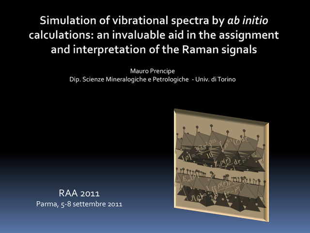 presentation: A very brief and condensed presentation of the theory; The application to an archeologically interesting material: jadeite (jade); The correlation of the vibrational features of jadeite with other structurally similar phases having a different composition (omphacite and diopside) What You will see here...