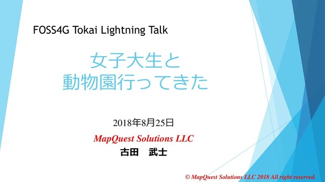 2018年8月25日 MapQuest Solutions LLC 古田 武士 FOSS4G Tokai Lightning Talk