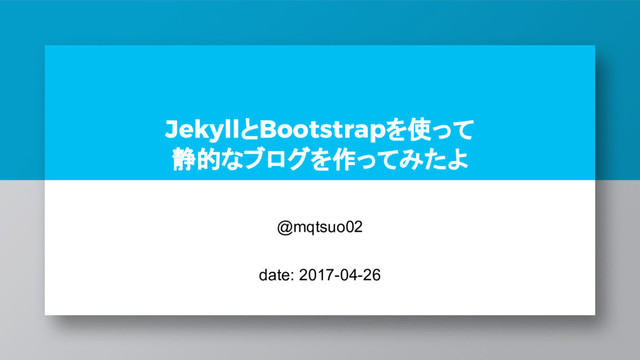 JekyllとBootstrapを使って 静的なブログを作ってみたよ @mqtsuo02 date: 2017-04-26