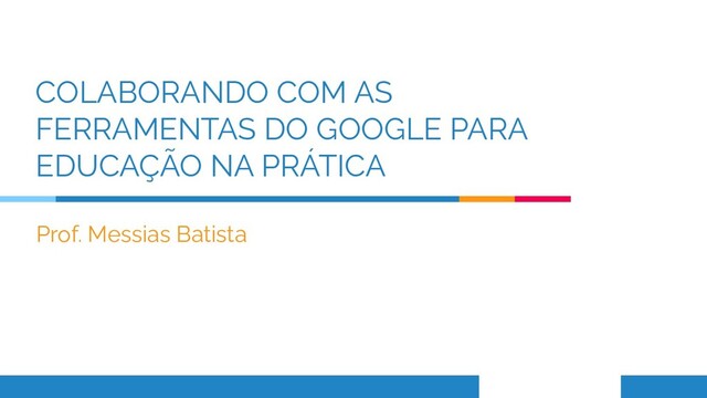 Nesta apresentação mostro a importância de conhecer ferramentas colaborativas para a sala de aula. O momento de pandemia e o trabalho remoto fortaleceram rapidamente esta tendência e forma de trabalho.