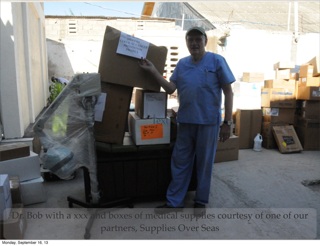 lifting - partnerships are in place; we’ve got our first clinic space; supporters from around the world and in Haiti are ready to act. We are in need of financial and in-kind donations. Monday, September 16, 13