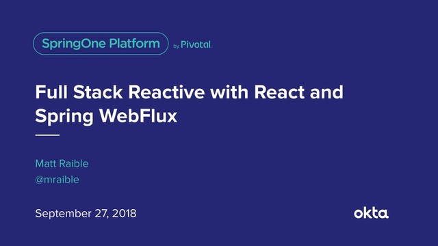 You have streaming data and want to expose it as reactive streams with Spring Boot. Great! Spring WebFlux makes that pretty easy. But what about the UI? Can you stream that data to the UI and have it be reactive and constantly updating too? This session explores techniques for making your app fully reactive with Spring WebFlux and React. Mostly live coding, with plenty of time for Q & A in the midst of it all.