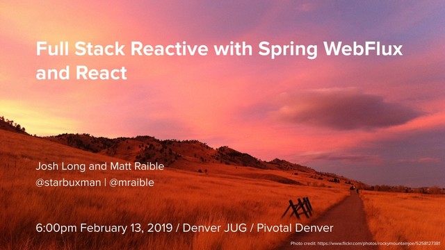 You have streaming data and want to expose it as reactive streams with Spring Boot. Great! Spring WebFlux makes that pretty easy. But what about the UI? Can you stream that data to the UI and have it be reactive and constantly updating too? This session explores techniques for making your app fully reactive with Spring WebFlux and React. Mostly live coding, with plenty of time for Q & A in the midst of it all.