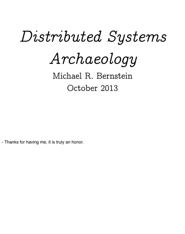 to apply an artifact-driven approach to understanding the history of the field of Distributed Systems - So I’m going to try to tell the story of the field primarily through its artifacts. Instead of giving a talk and showing the sources at the end, I will use the sources to drive the story.