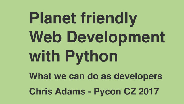 - Low CO2 travel in Europe by train TeaLight - Low CO2 cups of tea Thermondo - lower CO2 heating in houses My Background: Chris Adams: @mrchrisadams Environmentally focussed web generalist