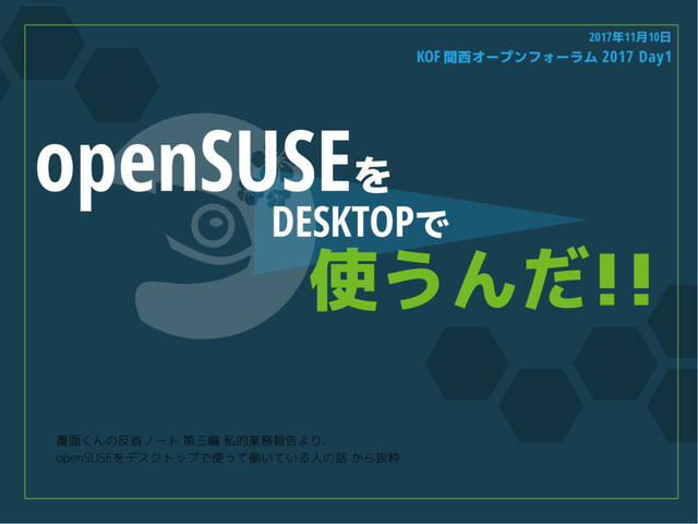 関西オープンフォーラム2017 1日目の発表資料です。 https://k-of.jp/2017/session/1086