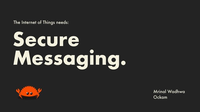 of secret key, Session Management, Key Ratcheting, Message Ordering, Delivery Guarantees … Identity and Trust Key Rotation, Key Lineage, Key Endorsements, Endorsement Revocation, Credentials, Credential Revocation, Anonymous Credentials, Delegation … Routing, Caching, Prioritized Ordering, Encrypted Group Messaging, Publish/Subscribe … We’re building multi-language, open source, libraries and tools that makes it easy to add secure messaging to IoT systems. github.com/ockam-network