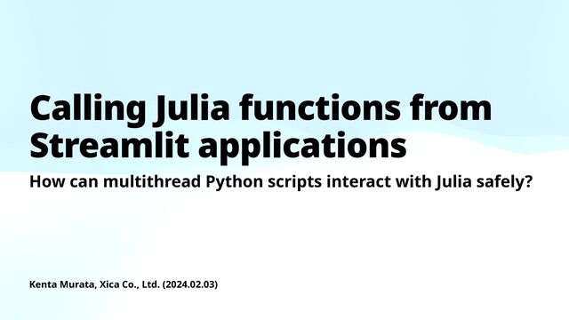 I talked about the way to call Julia from multithreaded Python scripts like Streamlit applications. This talk was held on JuliaTokyo #11 on Feb 3 2024. If you're interested in this talk, please refer https://github.com/mrkn/streamlit-julia-call.