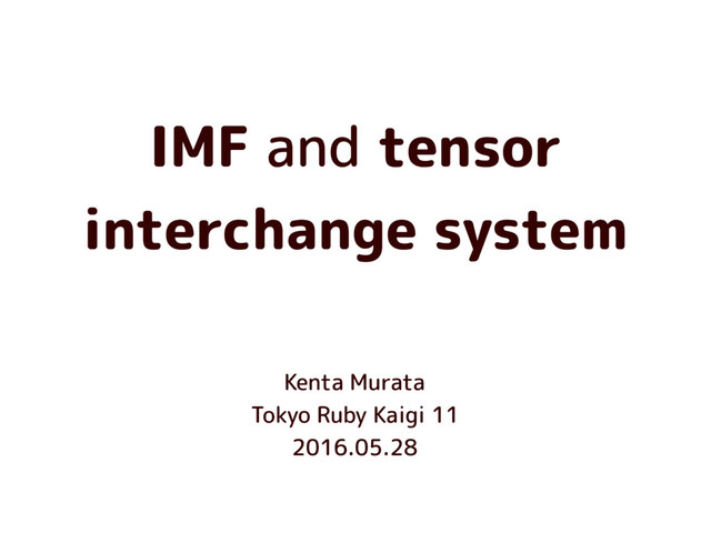 time series scalar data • 2-tensor (matrix) ‣ e.g. 2ch sound, grayscale image, time series vector data • 3-tensor ‣ e.g. RGB image, grayscale animation • 4-tensor ‣ e.g. RGB animation