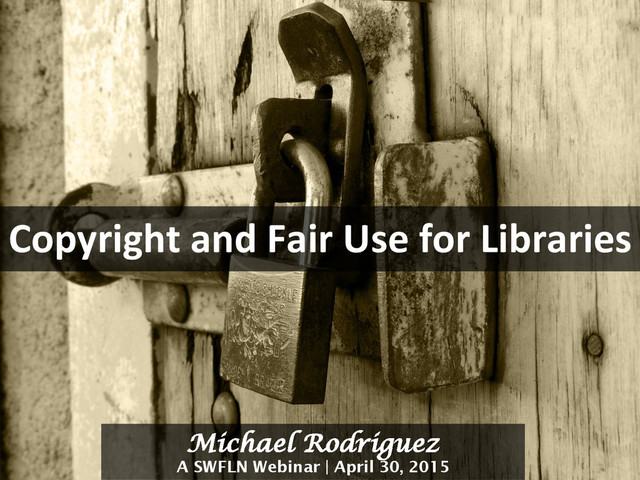 1.5-hour paid webinar sponsored by the Southwest Florida Library Network (SWFLN) to educate Florida librarians on copyright and fair use in the library context, April 2015