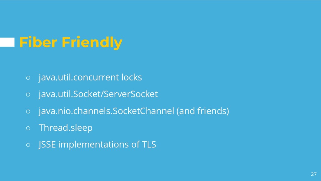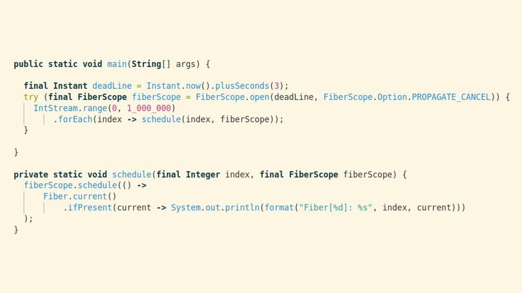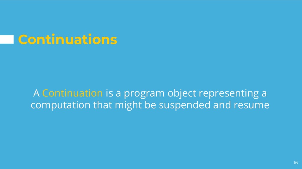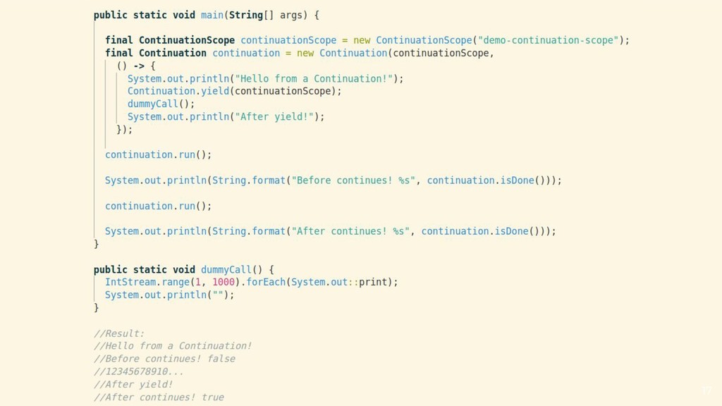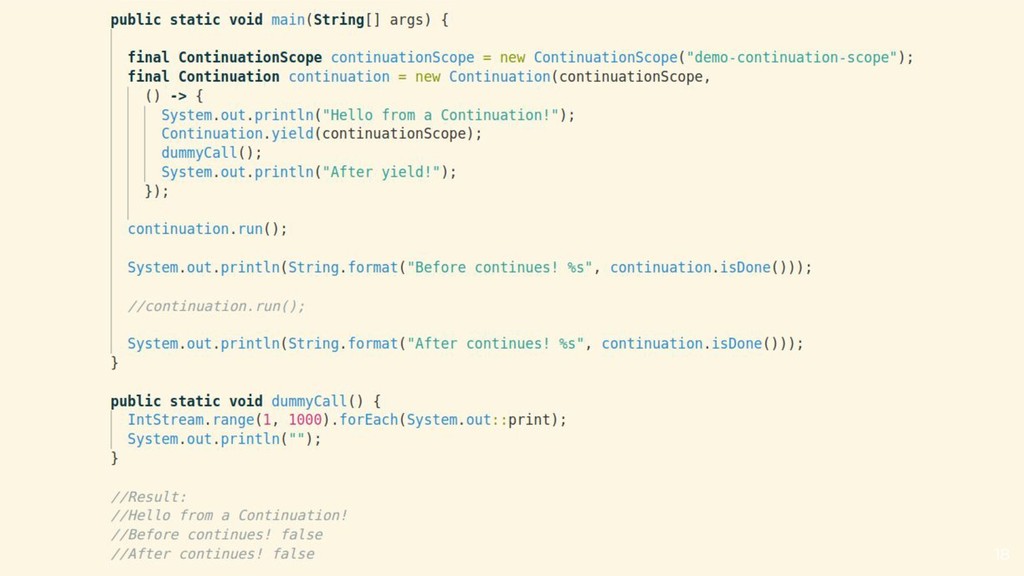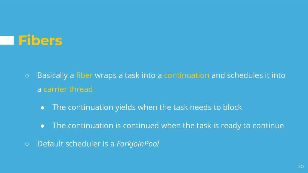 a continuation and schedules it into a carrier thread • The continuation yields when the task needs to block • The continuation is continued when the task is ready to continue ◦ Default scheduler is a ForkJoinPool