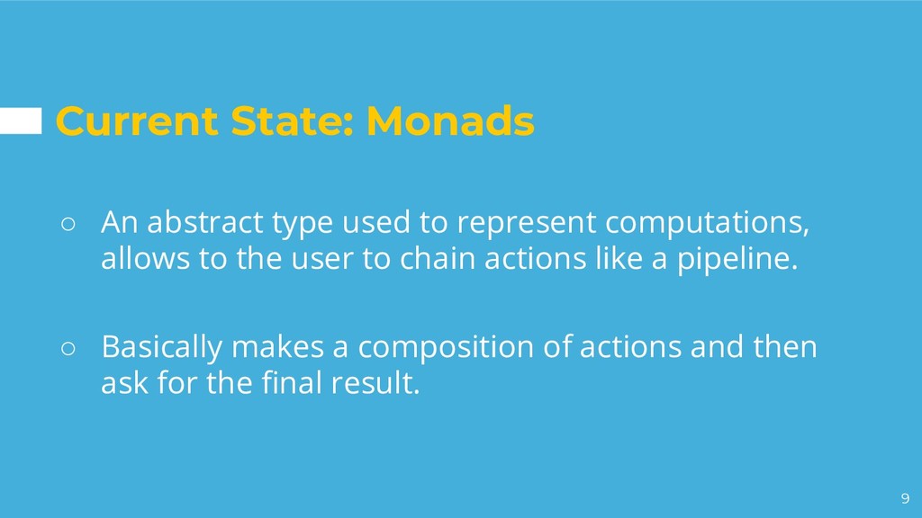 represent computations, allows to the user to chain actions like a pipeline. ◦ Basically makes a composition of actions and then ask for the final result.