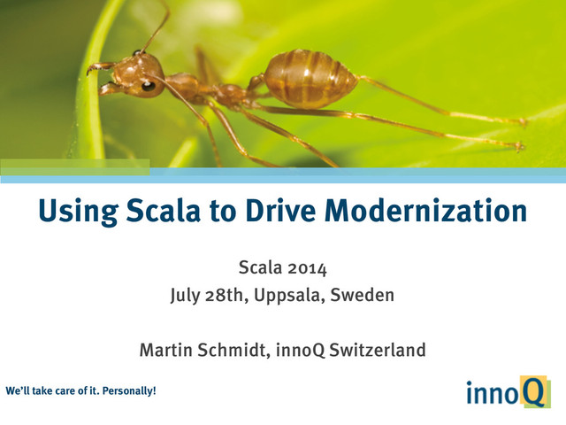 Enterprise Environments tend to show resistance to change. innoQ has been involved in many modernization projects for customers, especially in combination with vast architectural tasks and re-engeering. Based on this experience, Martin will show how Scala can help to push modernization efforts and bring the desired changes to these companies.