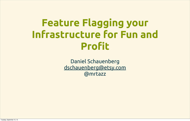 Presentation from the September 2013 NYC LOPSA meetup about Chef workflow at Etsy and our feature flagging/whitelisting library for rollouts in Chef