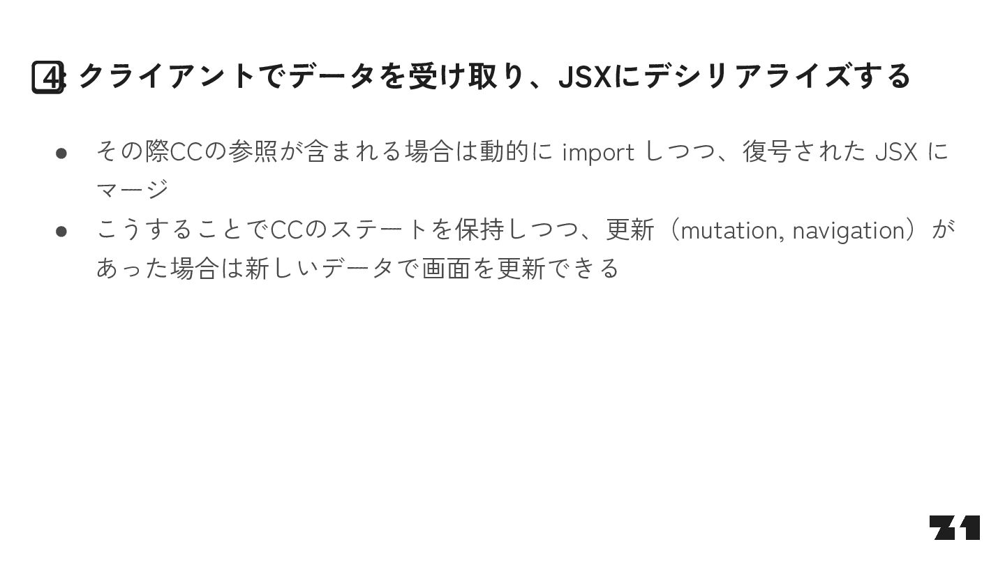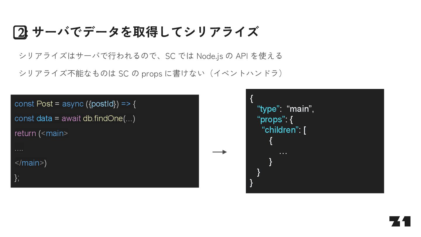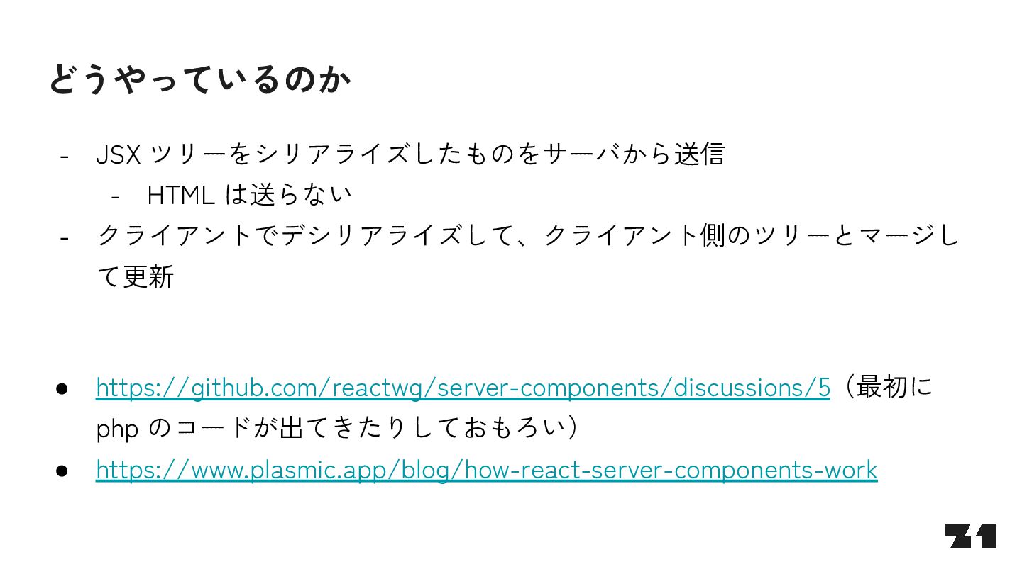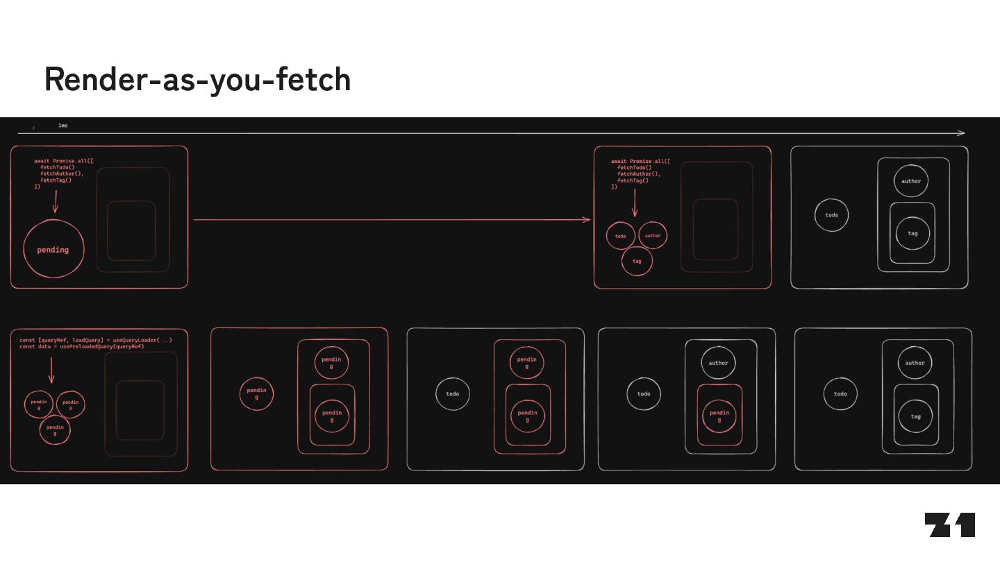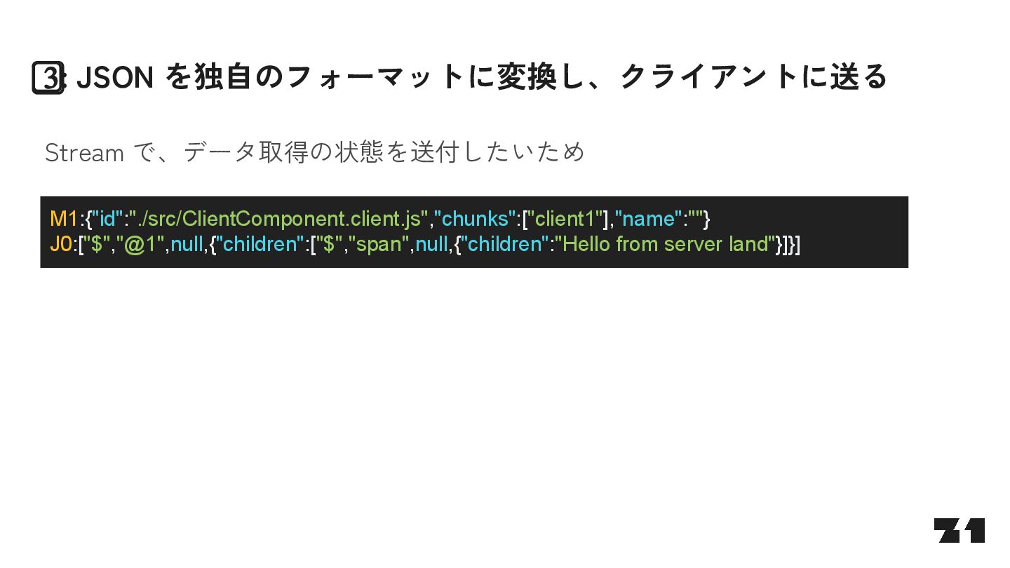 await fetch(…) return … } const Parent = () => { <> parent <Suspense fallback="loading"> <Fetcher /> </Suspense> </> } J0:["$","",null,{"children”:[“parent”,[“$”,”$2",null,{"fallback”:”loading”,”children”:”…”}]]}] S2:"react.suspense" J0:["$","",null,{"children”:[“parent”,[“$”,”$2",null, …]]}]